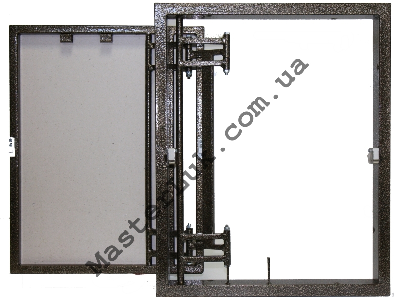 Рама и петля люка изготовлены из стали при помощи аргонно-дуговой сварки и покрыты порошковой краской. Такое покрытие гарантирует высокую степень коррозийной стойкости. На раме дверцы укреплен влагостойкий ГВЛ (гипсо-волокнистый лист) толщиной 10 мм для наклейки облицовочной плитки.