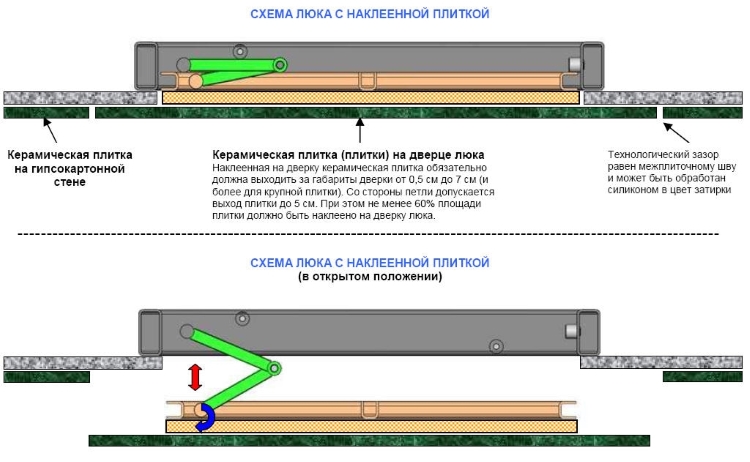 Схема відкривання люка-невидимки з наклеєною плиткою